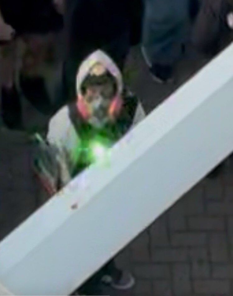 Alrededor de las 8:24 p.m., se observó a un manifestante apuntando con un láser a agentes federales. El sospechoso, identificado como Eduardo Díaz, de 22 años, fue detenido a las 11:14 p.m.