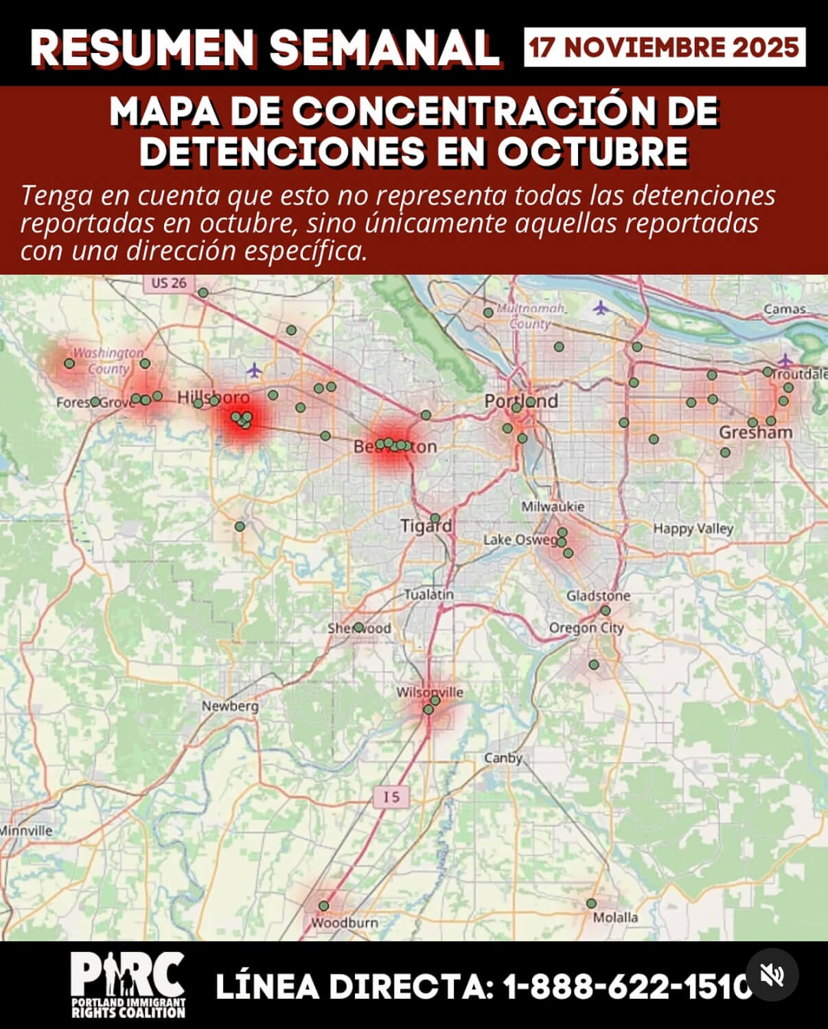 Sin embargo, la Coalición por los Derechos de los Inmigrantes de Portland (PIRC), la agencia oficial de observadores legales publicó en Instagram que, en los primero 18 días de noviembre, se han reportado unas 219 detenciones, 96 de ellas entre el 10 y 16 de noviembre.
