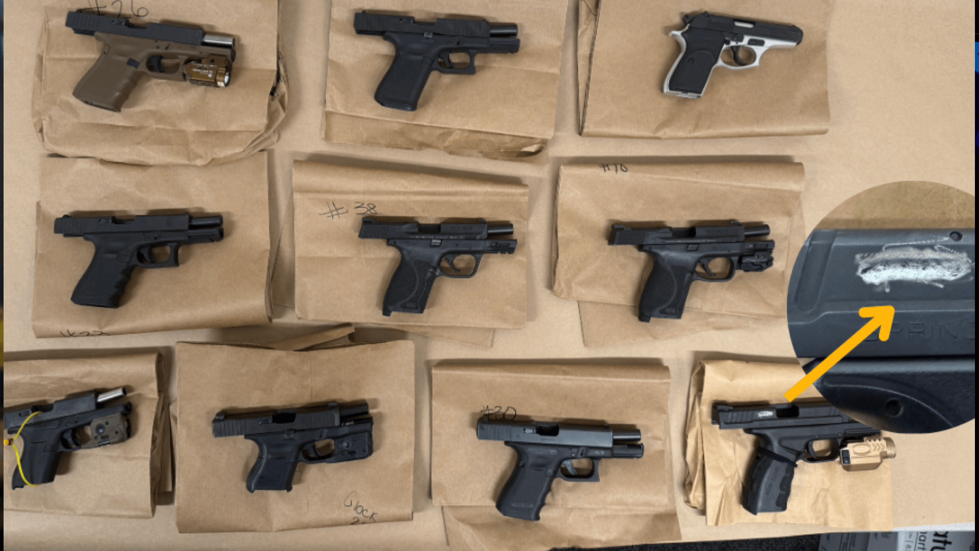 Los investigadores recuperaron armas de fuego, incluyendo tres reportadas como robadas, cargadores extendidos, municiones y otras pruebas de actividad pandillera. Se sospecha que un arma de fuego está relacionada con un tiroteo reciente.
