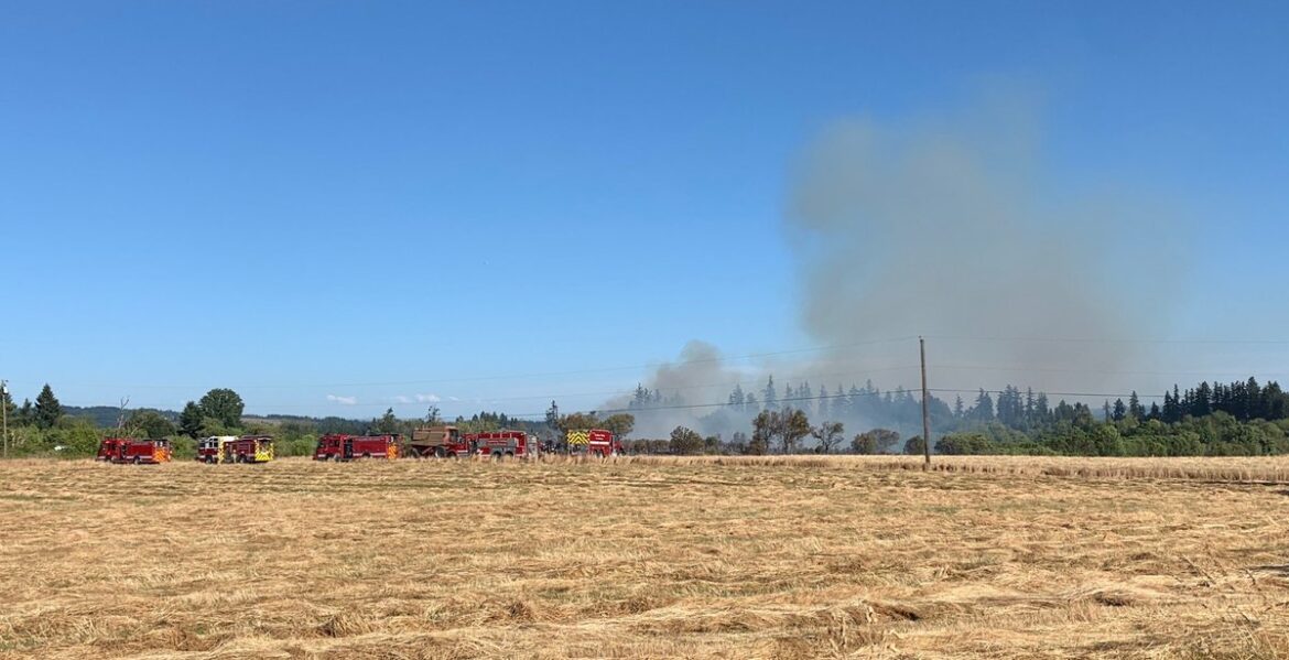 Según bomberos de TVF&R, el siniestro se detectó al sur de Hillsboro en la cuadra 4200 de SW Minter Bridge Road y rápidamente se extendió a varios acres.