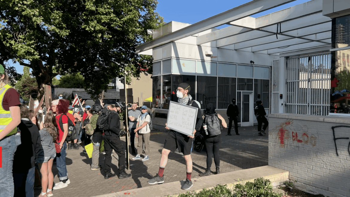 El gobierno de Trump alega que los manifestantes impiden que los agentes federales cumplan con su deber porque bloquean el edificio, pero la jueza dijo que los agentes fácilmente pueden despejar la zona.