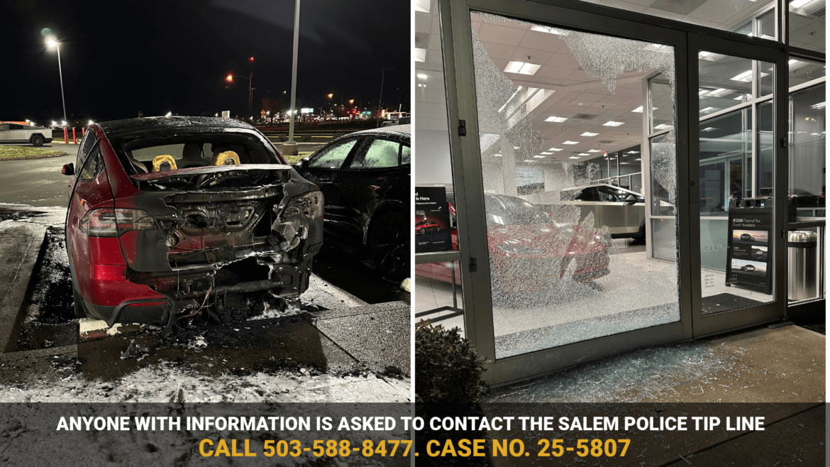 SALEM, Ore. — La policía de pide ayuda de la ciudadanía para dar con un pirómano acusado de incendiar un vehículo Tesla de un concesionario de autos.